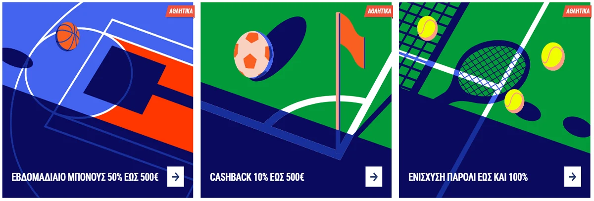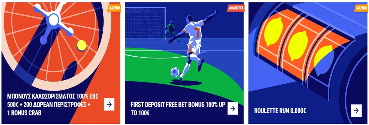 Προσφέρουμε στους νέους παίκτες ένα εντυπωσιακό πακέτο καλωσορίσματος αξίας έως 500€. Το μπόνους καλωσορίσματος περιλαμβάνει 100% αντιστοιχία της πρώτης κατάθεσης.