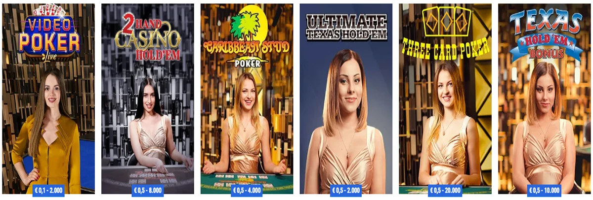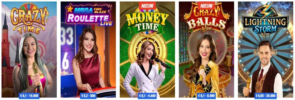 Het live casino wordt verzorgd door Evolution Gaming en Ezugi. Live dealers bedienen authentieke roulette, blackjack, baccarat en poker tafels via hoogwaardige videostreams.